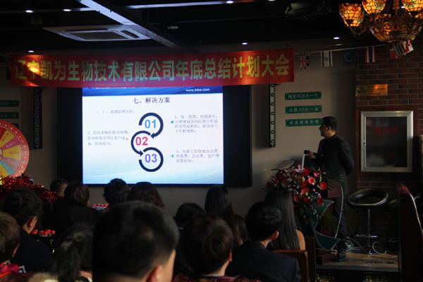 2018年1月8日,遼寧凱為生物技術(shù)有限公司2017年年度總結(jié)、表彰及2018年年度計劃大會在錦州西部音樂烤場一樓宴會大廳隆重召開。 公司全體員工參加了此次會議。