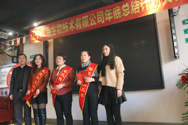 隨后,大會進行了“生產(chǎn)部優(yōu)秀員工”,“六年貢獻獎”,“十年貢獻獎”的表彰活動??偨?jīng)理王鐵良、銷售部總經(jīng)理趙福寬、集團事業(yè)部經(jīng)理景立坤、生產(chǎn)部經(jīng)理肖營營,分別為獲獎員工頒發(fā)了榮譽證書、獎金或獎品,鼓勵他們在新的一年里繼續(xù)努力工作,再創(chuàng)佳績。