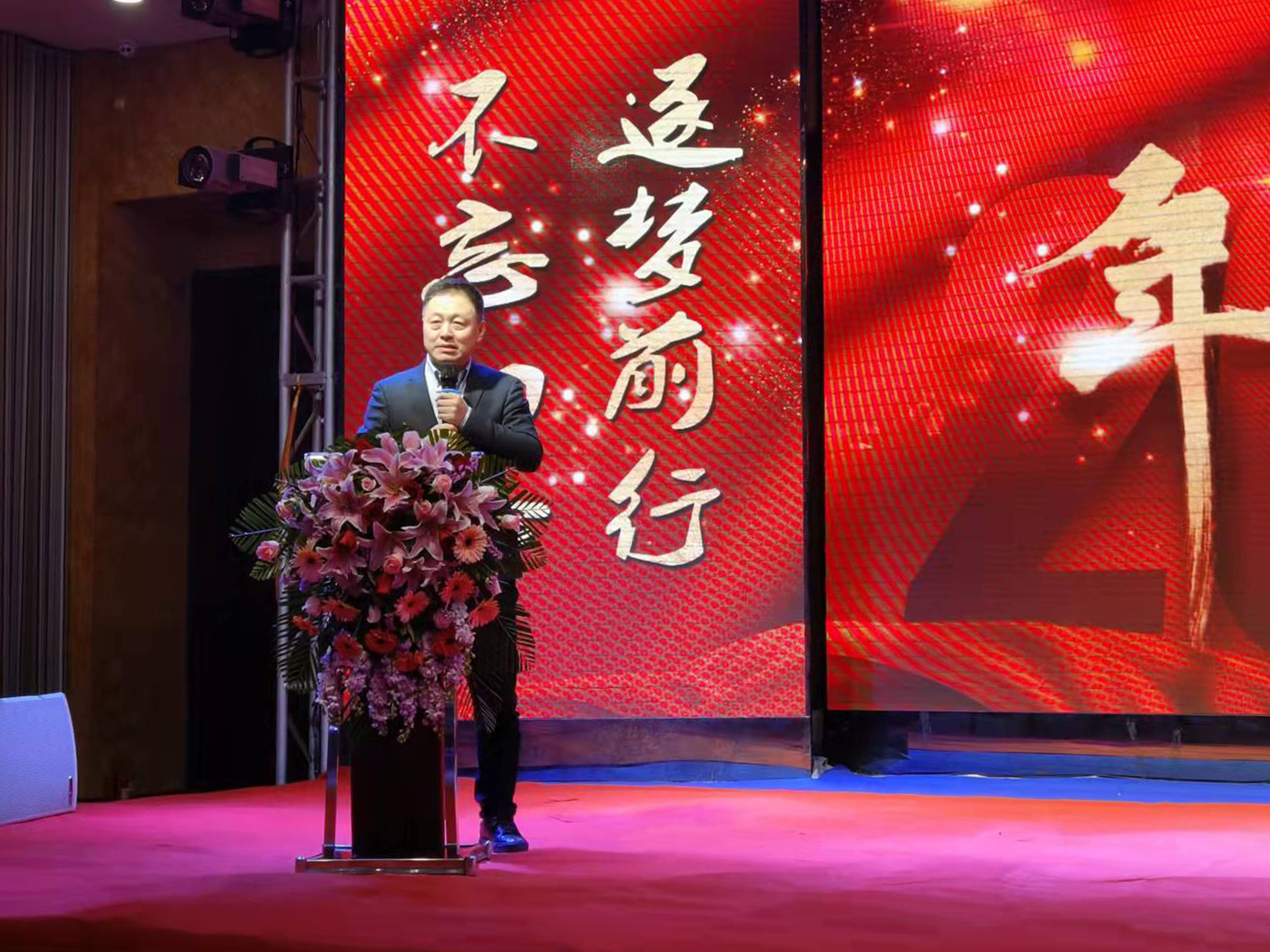 特約嘉賓陳峰陳總首先上臺致新年賀詞分享了他從業(yè)二十多年的心得體悟,并對凱為精神進行了高度贊揚,同時也對凱為人在新的一年提出新了的要求。