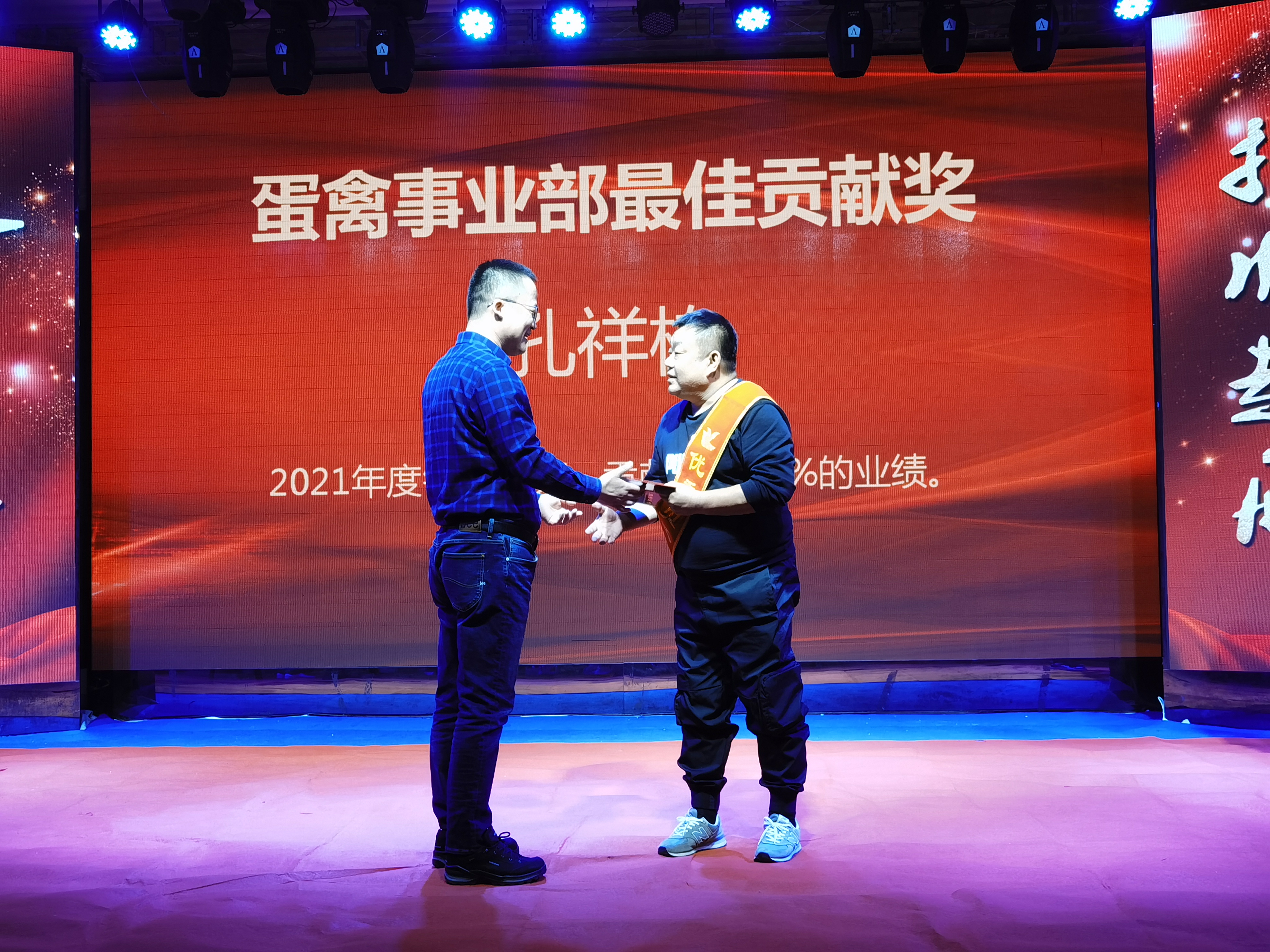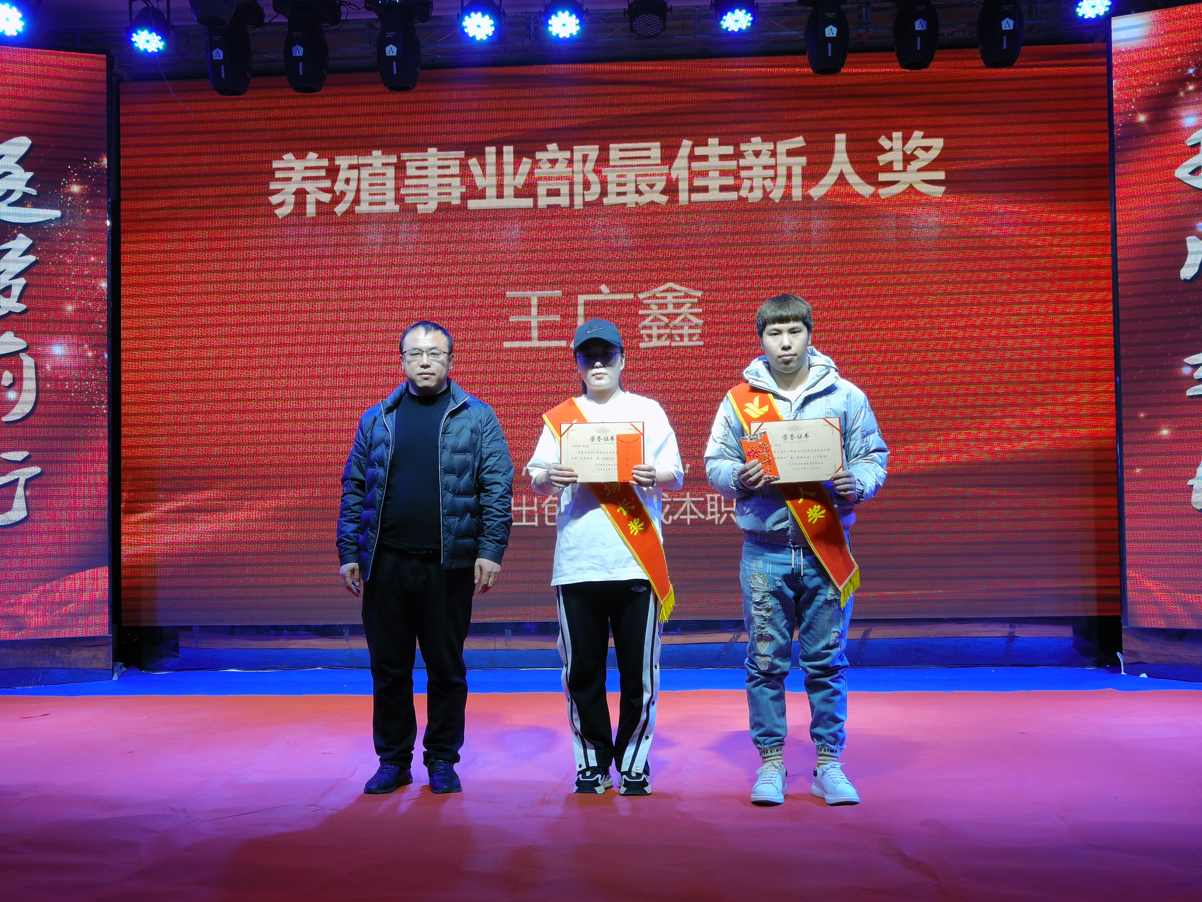 叢林智、王廣鑫獲得2021年度優(yōu)秀場長、最佳新人獎。叢林智工作積極努力,技術精湛。能吃苦,肯鉆研,使凱豐養(yǎng)殖小區(qū)的出欄成績大幅度提升。并且創(chuàng)造凱豐養(yǎng)殖小區(qū)歷史最高歐值410以上,利潤單只最高。王廣鑫踏實肯干,勤奮好學。協(xié)助場長出色的完成本職工作。得到領導和同事的一致的高度好評。公司養(yǎng)殖場總經(jīng)理劉迪為獲獎者頒獎