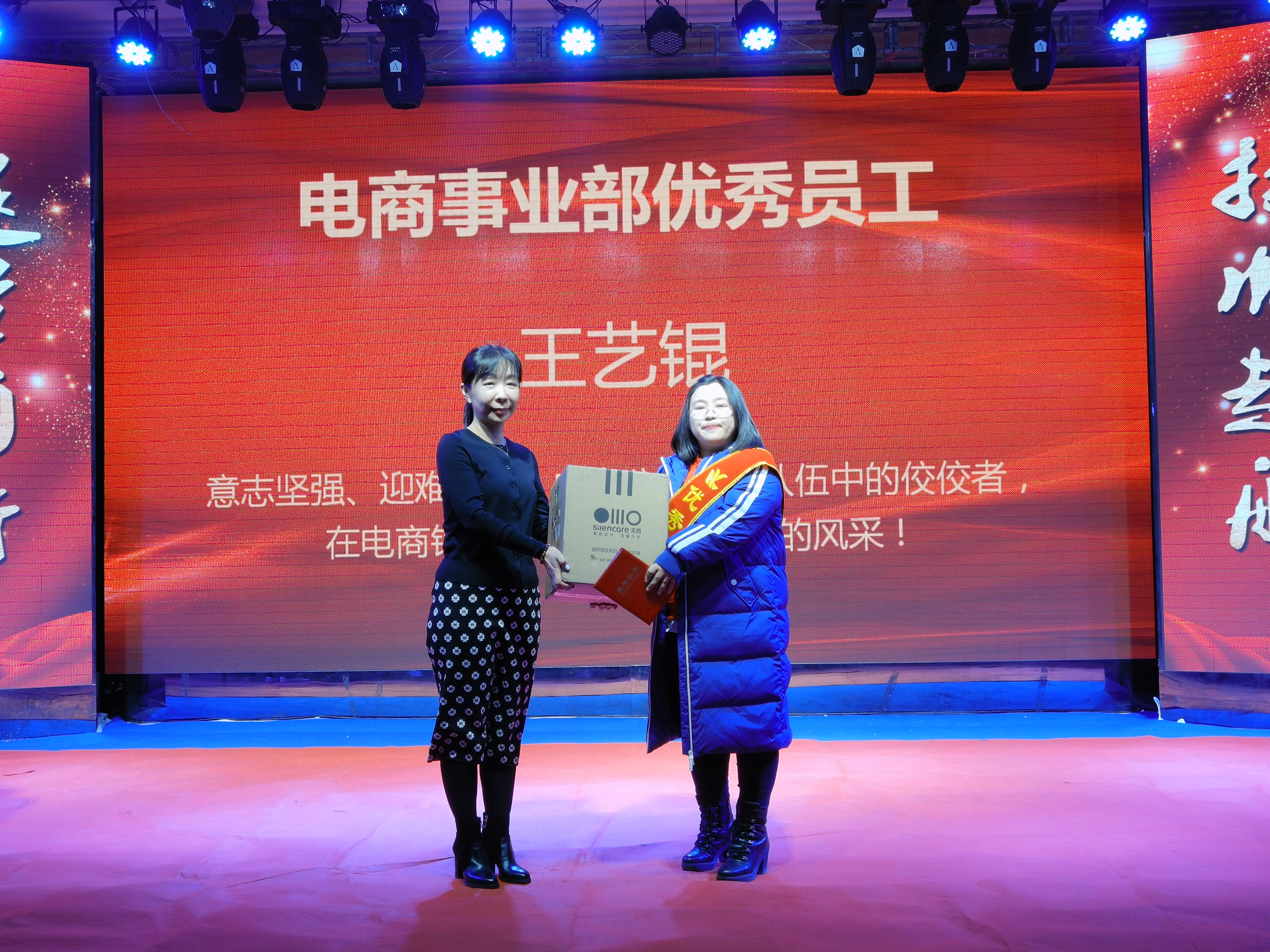 王藝錕獲得2021年度六年貢獻獎,她意志堅強、迎難而上,成為公司電商隊伍中的佼佼著,在電商銷售的前沿展現(xiàn)了自己的風采,她用非凡的膽量,向我們演繹了電銷渠道的精彩。公司電商事業(yè)部總經(jīng)理于麗娜為獲獎者頒獎。