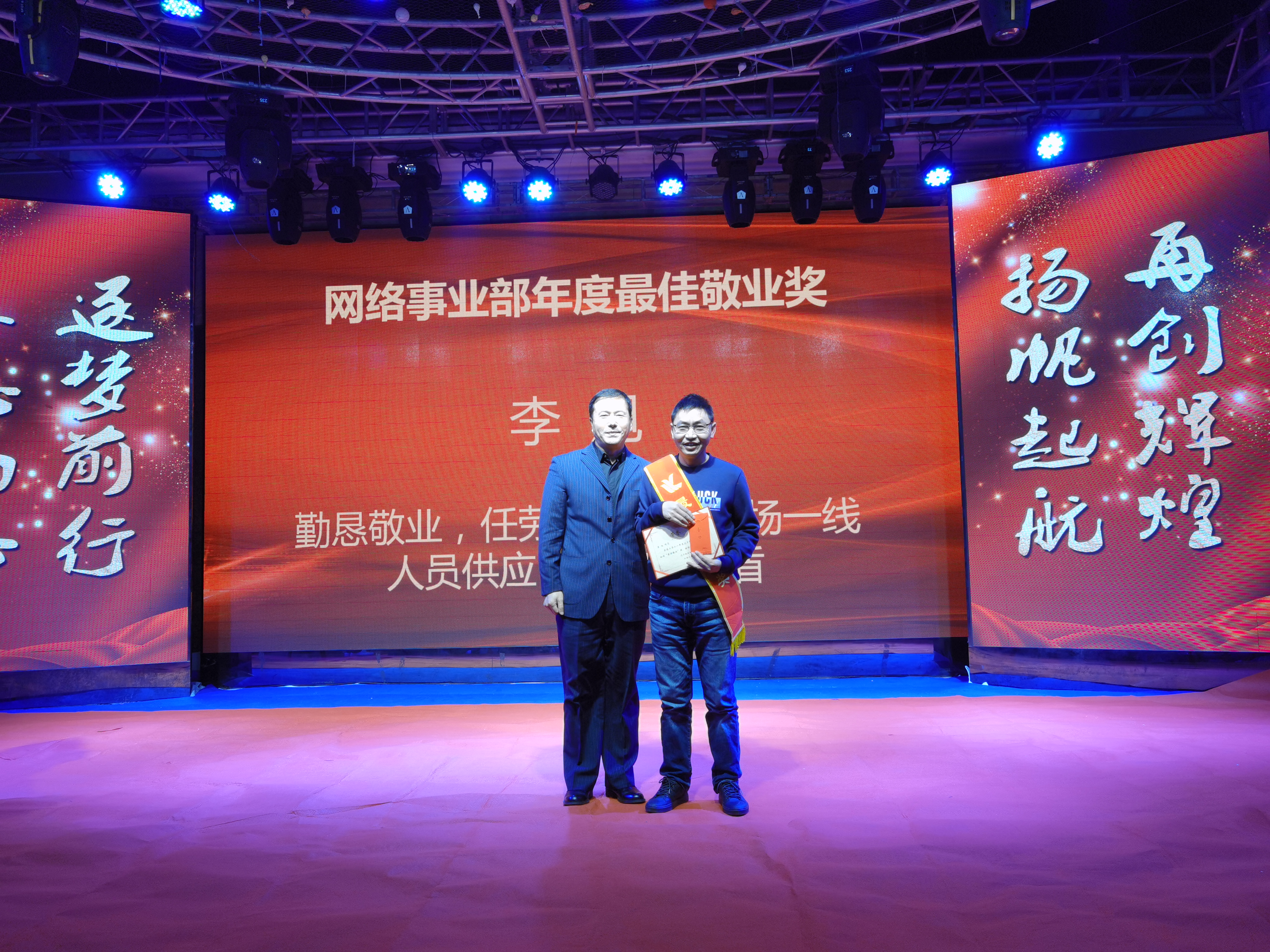 魏香、李鳳芝、劉爽獲得生產(chǎn)部優(yōu)秀員工獎,他們生活在生產(chǎn)一線,在生產(chǎn)車間改造情況下,能夠吃苦耐勞,克服困難,積積主動,盡職盡責的工作作風滲透到車間的每一個日子,每一個角落,他們勤勤懇懇,他們熱情洋溢,他們默默無聞地創(chuàng)造著自己的價值。公司網(wǎng)絡事業(yè)部總經(jīng)理趙福寬為獲獎者頒獎。